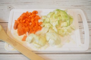1. Лук, кольраби и морковь почистите, нарежьте кубиком.