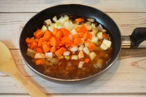 4. Добавьте морковь и кольраби, тушите минут 10.