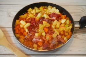 3. Добавьте томатную пасту и немного воды.
