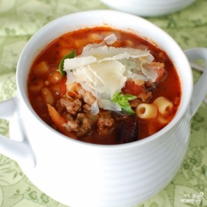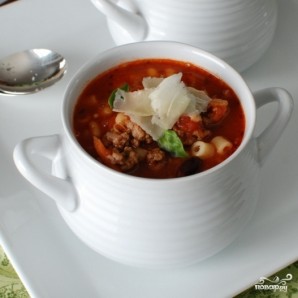 Густой итальянский томатный суп с макаронами и фаршем