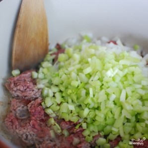 Еще через минуту добавляем мелко нарезанный стебель сельдерея.