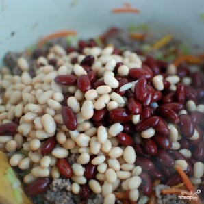 Затем добавляем в кастрюлю консервированную фасоль (без жидкости).