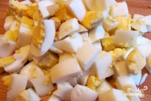 Яйца порезать.