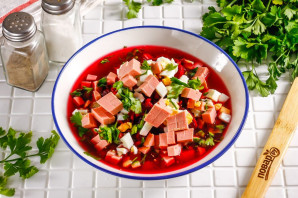 Рецепт не отнимет много времени. Очень вкусное холодное блюдо для знойных летних дней! Вы можете заранее отварить картофель, свеклу и куриные яйца и хранить их в холодильнике. Минеральную воду выбирайте газированную или нет — по своему вкусу Подавайте суп горячим.