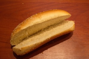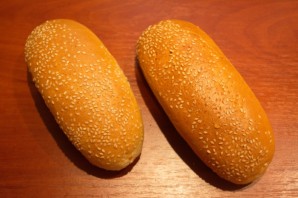 Возьмите 2 булочки. Принято для классического хот-дога брать булочки продолговатой формы.