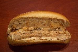 Теперь намажьте каждую часть булочки майонезом. Он смешается с томатным соусом.