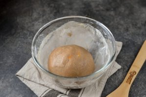 Тесто накройте или замотайте в пищевую пленку, отправьте в холодильник минут на 20.