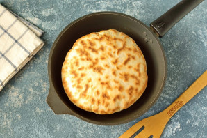 Жарьте хачапури на сухой сковороде с двух сторон под крышкой на среднем огне.