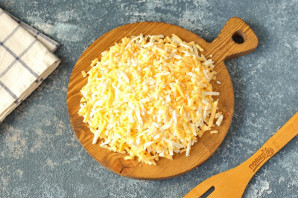 Сыр натрите на крупной терке. Имеретинский сыр в наших реалиях легко можно заменить на сыр сулугуни, но я предлагаю пойти дальше и взять еще один любой сорт сыра. Подойдет моцарелла, брынза и даже любой сливочный.