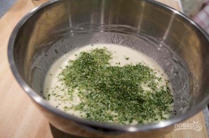 3. Смешайте 2 стакана муки с солью (1 ложка) и введите к жидким ингредиентам.
