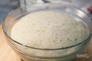 9. Накройте миску пленкой и оставьте так на 1-2 часа, чтобы тесто поднялось в 2 раза.