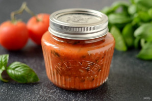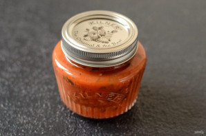 Разлейте соус по заранее стерилизованным баночкам, закрутите крышками и оставьте охлаждаться. Затем можно убрать соус в прохладное место.