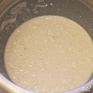 Тем временем в отдельной миске смешайте 1 стакан теплого молока, сметану, растительное масло, яйца, соль. Добавьте еще две чашки муки и перемешайте венчиком. Затем смешайте эту смесь с дрожжевой.