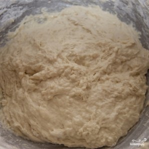 Постепенно добавляя в смесь оставшуюся муку, замешиваем тесто.