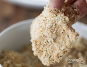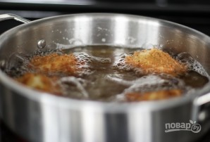 1. Подготовьте панировочные сухари (можно со специями или зеленью), муку, яйца взбейте со сливками, солью и перцем. Растительное масло влейте на сковороду или кастрюлю и поставьте разогреваться.