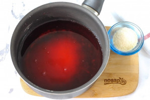 Всыпьте в горячую жидкость желатин и размешайте. Оставьте на 5-7 минут для набухания, затем снова размешайте, поднимая его со дна емкости.