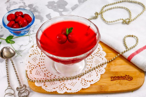 Готовое желе из вишневого сока подавайте к столу охлажденным.