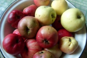 Теперь сложите нарезанные яблоки в кастрюлю, залейте их наполовину водой и поставьте на огонь. Яблоки необходимо варить в течение 30 минут, затем через дуршлаг и марлю сливаем в другую кастрюлю получившийся яблочный сок.