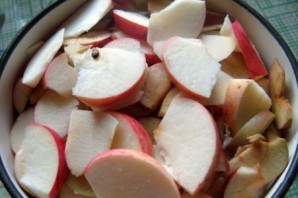 Затем разрежьте яблоки на дольки. Обратите внимание! Яблоки не очищаем от семечек, кожуры и сердцевины, так как именно в них содержатся необходимые для варки желе вещества.