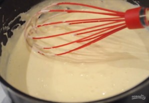 2. Приготовьте соус. Для этого разогрейте сливки в небольшой кастрюле и добавьте плавленый сыр. Помешивайте массу до полного растворения сыра. Выдавите чеснок. Соус готов.