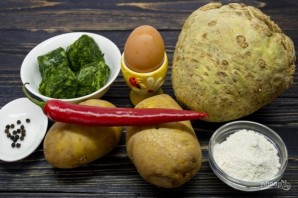 1. По классическому рецепту в это блюдо не входит укроп, но я добавляю, так намного вкуснее. Шпинат и укроп придают не только красивый цвет, но еще и необыкновенные вкусовые нотки. Сельдерей потребуется корневой.