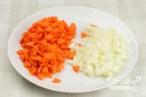 Лук нарезаем кубиками, морковь - не небольшие кусочки.