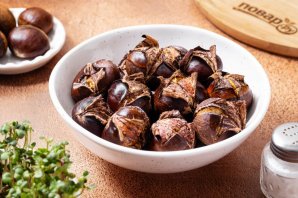 Готовьте каштаны 20-25 минут при температуре 180-190 градусов. Во время приготовления каштаны можно переворачивать, чтобы они равномерно пропекались.