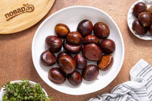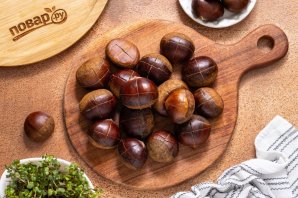 Готовые каштаны должны стать мягкими, легко протыкаться ножом, а скорлупа должна стать хрупкой, легко отделяться.