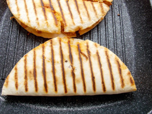 Закройте начинку второй половиной лепешки и обжарьте с двух сторон на горячей сковороде в течение 2-3 минут.