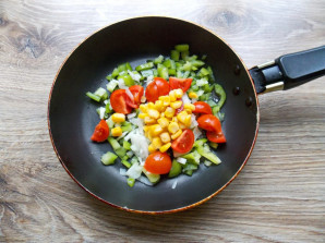 В сковороду добавьте консервированную кукурузу.