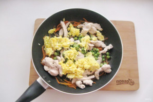 Добавьте жареные яйца в сковороду.