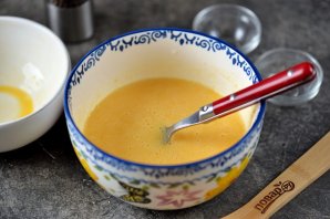 Дальше влейте яичную смесь, продолжайте взбивать. Густоту соуса можно регулировать оставшейся водой.