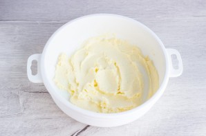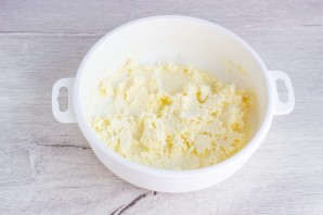 Начните с приготовления теста. Масло комнатной температуры разотрите с 1 ст. л. сахара, щепоткой соли и ванильным сахаром.