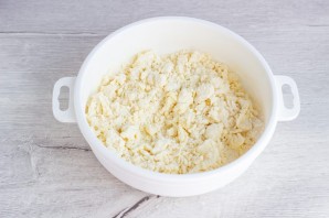 Вмешайте ложкой просеянную муку с разрыхлителем – и получите довольно крупную крошку.