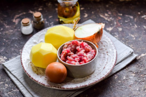 Поверх фарша добавьте еще картофель. Сформируйте заготовку так, чтобы фарш был внутри, а картофель его полностью покрывал.