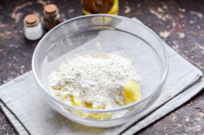Всыпьте в емкость пшеничную муку, соль и перец по вкусу.