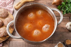 Опускать фрикадельки необходимо после закипания бульона. Если необходимо, предварительно отрегулируйте его на соль. Можно добавить 1-2 щепотки сахара.