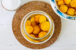 Промойте абрикосы в воде, удаляя подпорченные плоды. Промойте банку с содой и тщательно сполосните. Выложите фрукты в емкость до середины.