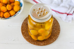 Залейте приготовленный сироп обратно в банку с абрикосами.