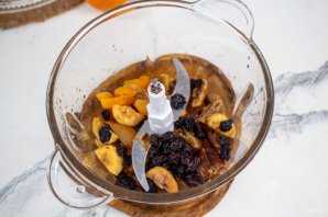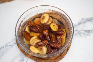 Сухофрукты замочите на 5-10 минут в теплой воде, затем промойте и обсушите.