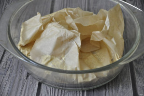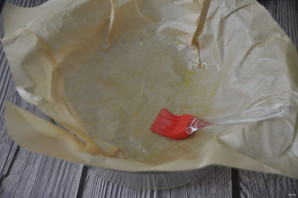 Дно формы выложите пергаментом, смажьте оливковым маслом.