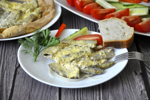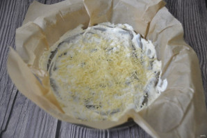 Смажьте рыбу сметаной, сверху присыпьте слегка тертым сыром.