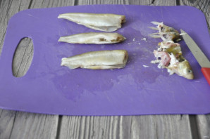 Очистите рыбу, удалите голову, внутренности и хвост.