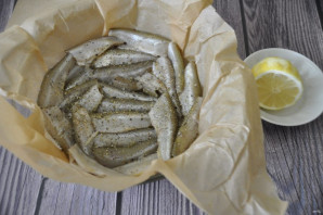 Уложите рыбку, посолите, поперчите, присыпьте пряными травами, сбрызните лимонным соком.