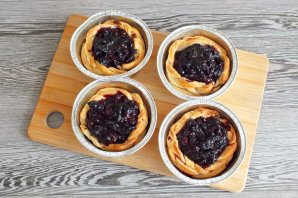 Выпечка готовится просто и быстро. Корзиночки из слоеного теста готовятся легко, но стоит учесть несколько нюансов. Основу для корзиночек нужно раскатать потоньше и немного больше основания формочек. Бортик-косичку максимально прижмите к бортикам формочек, чтобы они не упали во время выпечки. Корзиночки необходимо выпекать до полуготовности, и только потом разложить начинку и выпекать до готовности Подавайте тёплым или охлаждённым. Идеально к чаю.