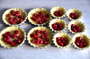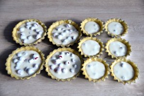 На дно корзиночек выложите вишню.