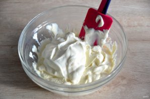 Добавьте в творожную массу сметану, смешайте.
