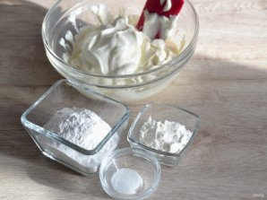 Добавьте в творожную массу сахарную пудру, 1/2 пакетика ванильного сахара, щепотку соли, крахмал. Смешайте творожную массу до однородного состояния. Для удобства нанесения ее в корзиночки, можно переложить в кондитерский мешок.
