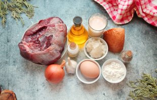 Подготовьте все необходимые ингредиенты для приготовления котлет из глухаря. Замочите мясо глухаря в холодной воде на четыре часа.