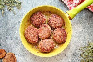 Обжаривайте котлеты до золотистой корочки и переверните. Обжарьте до корочки другую сторону, влейте воду, закройте крышкой и готовьте еще 10-15 минут, до готовности.